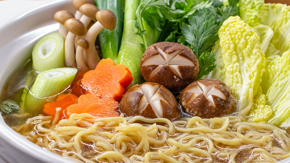 コツは、具材を入れたら“軽くフツフツ”くらいの火加減で煮ること。ぐらぐら沸かすと、野菜が煮崩れたり、麺がのびやすくなります。